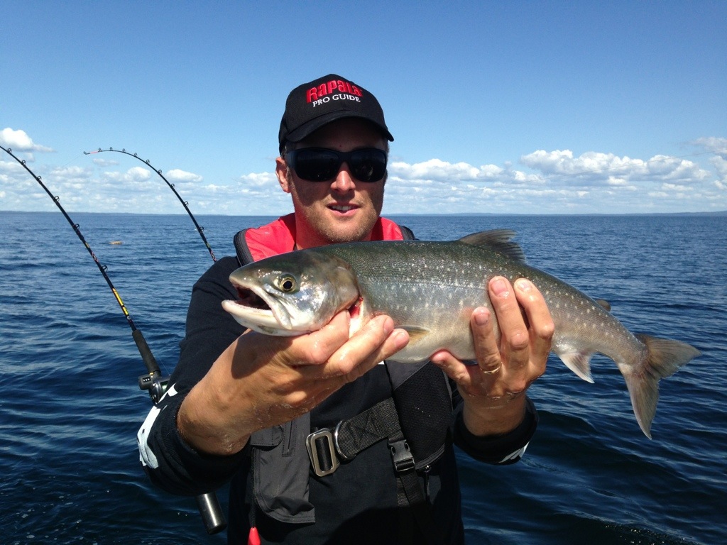 Det hugger riktigt bra på Vättern idag, Vi har fått 10 rödingar nu 5st över 50cm. Dom tar på djupriggen mellan 70-90fot.