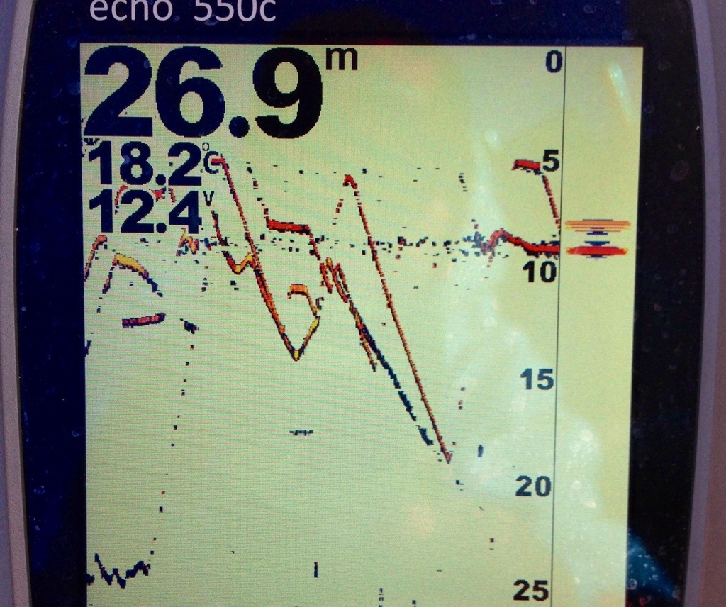 Rödingen jagar jiggen men nyper i stjärten. Nu blir det att testa Trigger X som doftar så gott.