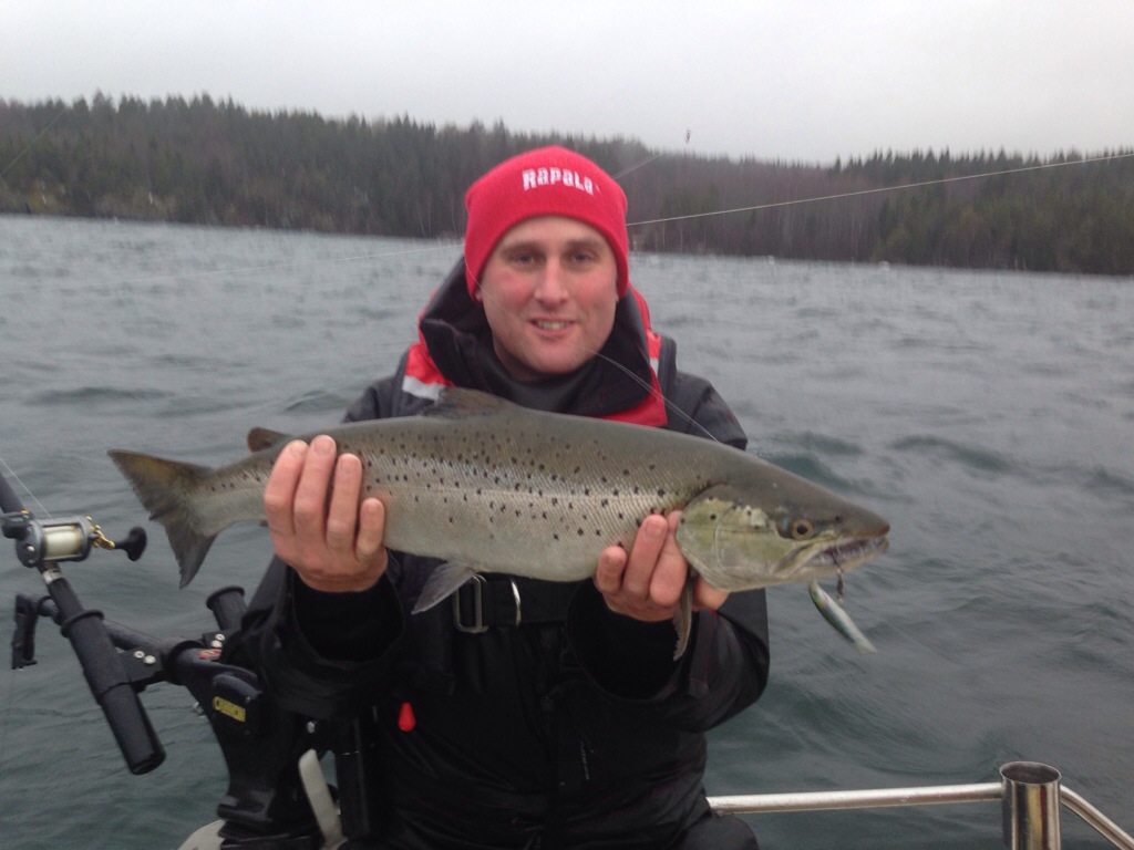Vi är på Vättern idag. Jag Farsan och Olle. Det var riktigt blåsigt när vi kom fram så vi fick vänta i bilen ett tag. Det nappade när vi kom ut. Fisken tar små X rap samt Max rap helt oblyat i ytan.