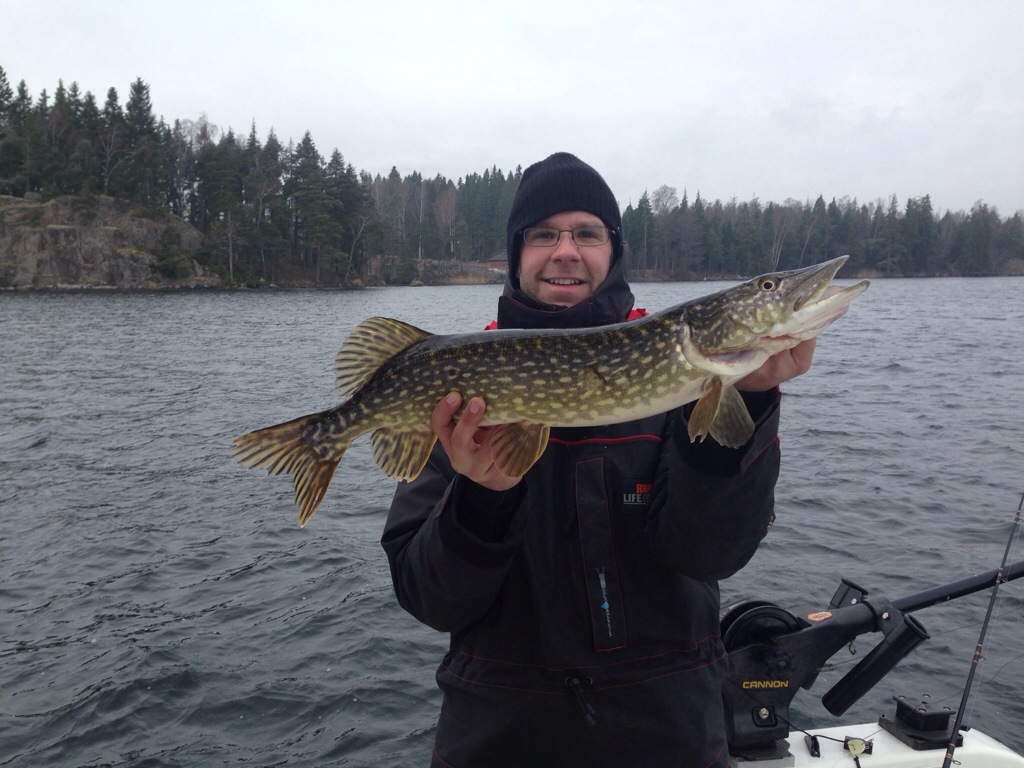 Smyger runt i norra Vättern i jakt på en stor krokodil. En mindre gädda och en vobbler har det blivit än så länge. Vi puttrar vidare. Mvh Ove