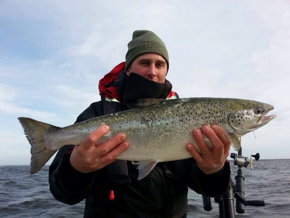 Jag och farsan trollar lax på Vänern idag. Det är ganska trögt men det kommer några bättre mellan vildlaxar och för små.