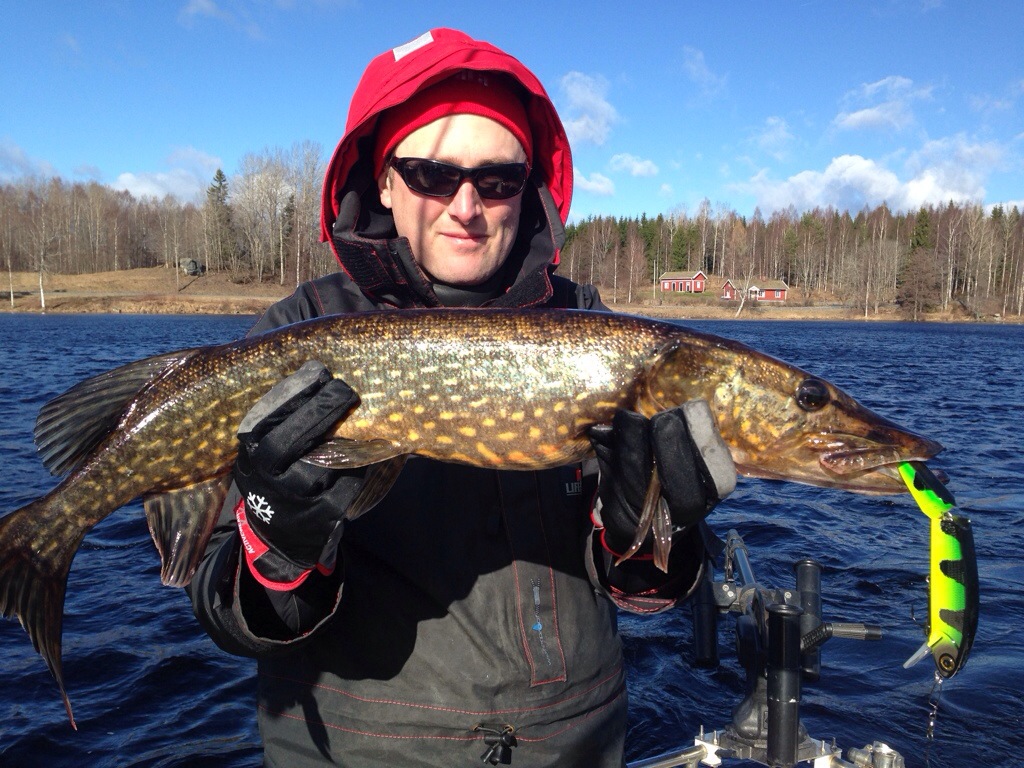 Idag fiskade jag och Nicklas gädda. Vi var på en mindre sjö på hemma plan. Vi trodde dom skulle vara riktigt tröga i den hårda nordanvinden. Men dom var på bra humör. Bäst fungerade Storm doombel i ytan. Till djupriggen var en Rapalahusky överlägsen. Trevlig helg Henrik.