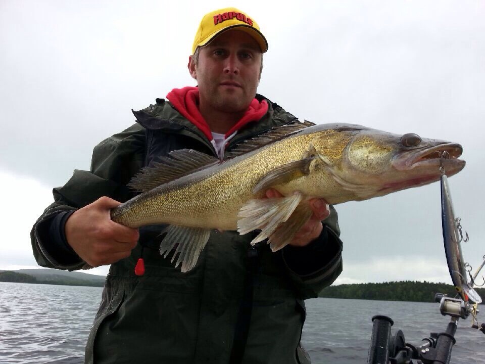 Jag och farsan tog en kort trollingtur idag. Det var riktigt blåsigt och regnigt. Men det gjorde inget för gösarna var på bästa napphumör. Den Största tog en huskyjerk 14 på djupriggen.