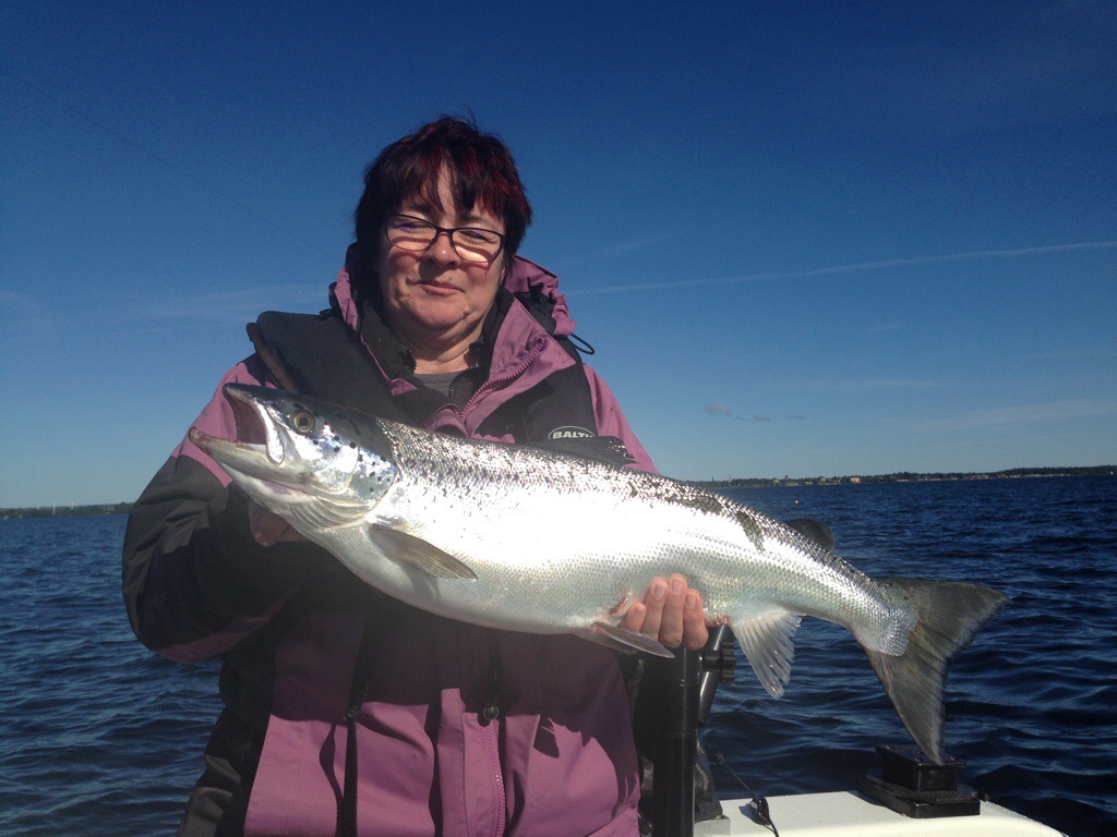 Idag är jag ute på Vättern med tyska kunder. Smakstart blev det med en lax på 72cm. Mvh Ove