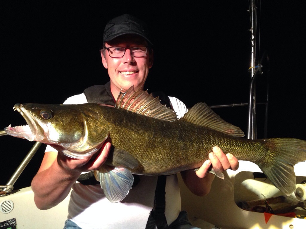Vi kör på med göstrollingen. Det är riktigt mörkt ute nu. Senaste gösen tog en Storm flatstick jointed. Den wobblern syns riktigt bra och ormar sig i vattnet.