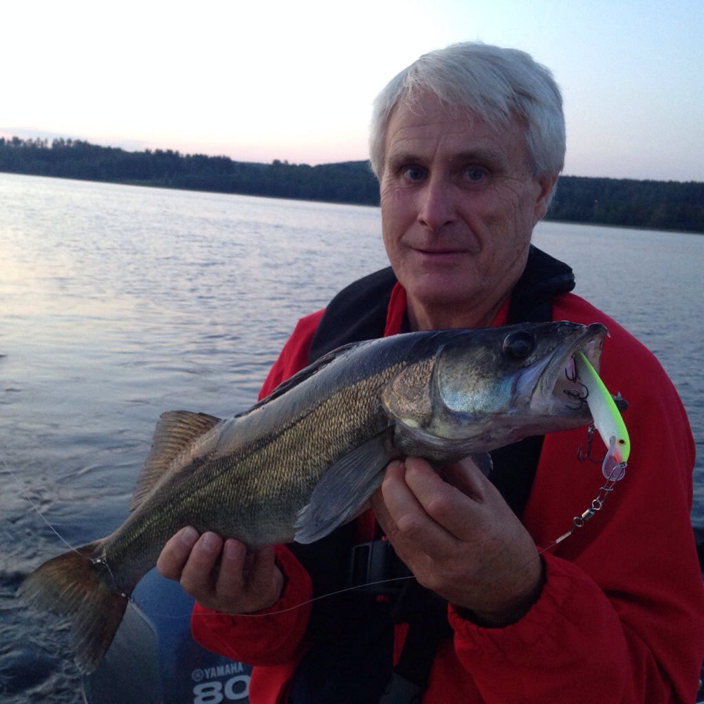 Farsan och jag testar om gösarna är vakna. Det är dom.Första tog en Scatter rap minnow oblyat i ytan.