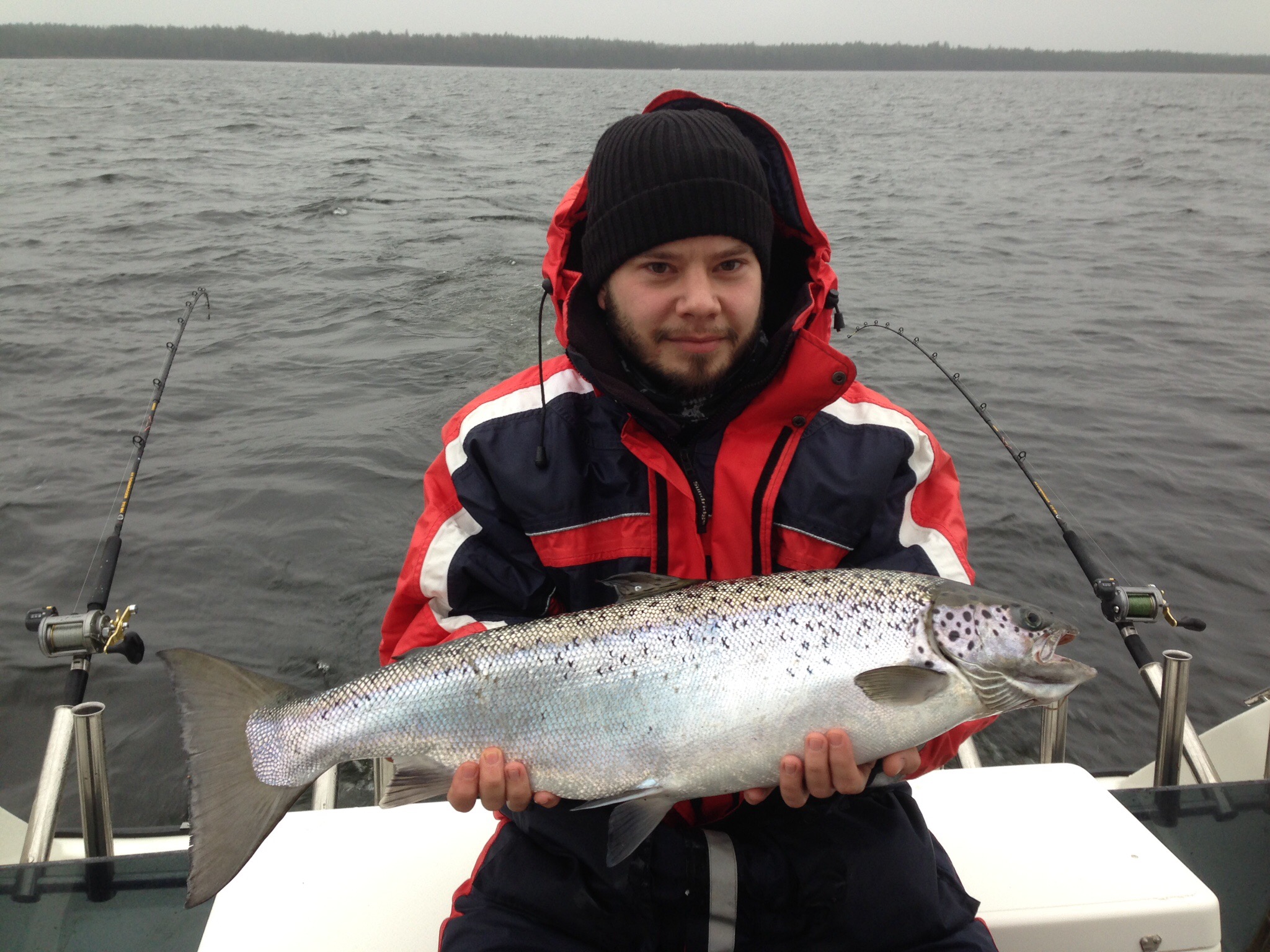 Idag tröskade vi runt i norra Vänern efter lite lax till julbordet. Fisket var seeegt men det trillade in en firre då och då. Två laxar fick åka Beason till hamnen. Största vägde 5,2kg och fick Catana spöt att buga ordentligt. Mvh Ove
