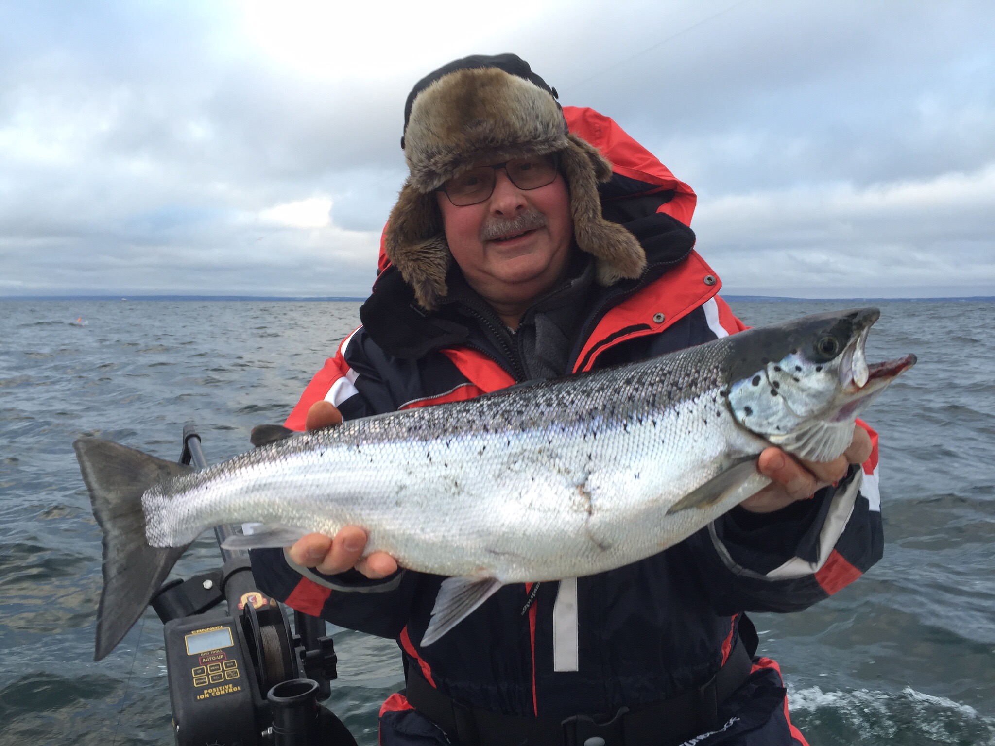 Vättern var lugn idag. På himlen fanns ett grått lock med moln. Det luktade lax lång väg. Garmins ekolod skvallrade om mängder med spigg det var bara att vänta på laxens första huggrush. Det dröjde inte länge förrän första laxen tog en grön vobbler i ytan. Fisket var stundtals bländande och vi landade 14 fiskar. Fem lax och nio rödingar. Bästa bete var X rap og och Shoehorn gul/silver. Så här borde alla fiskedagar vara. Mvh Ove