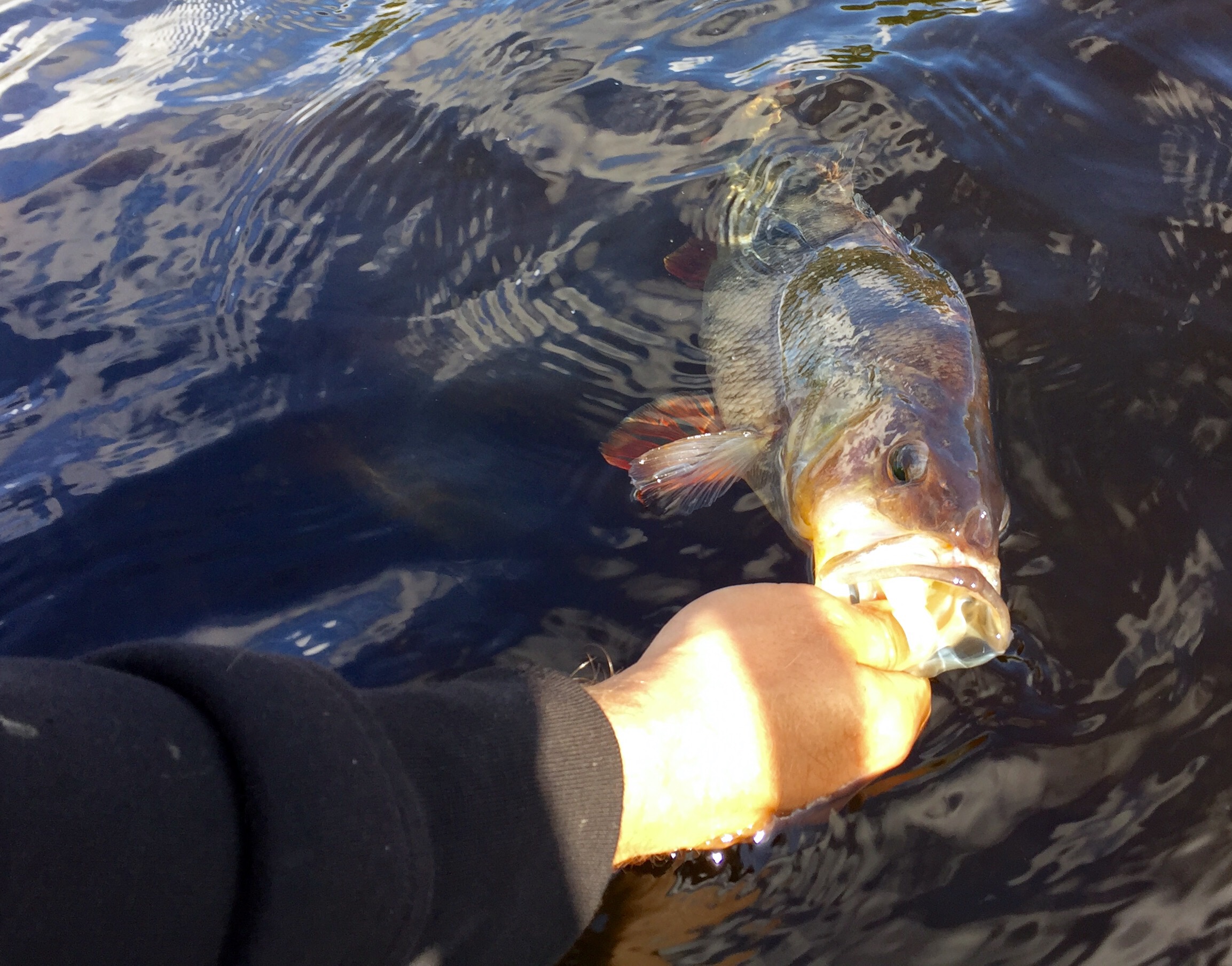 Äntligen satt den där! Många pass har jag lagt efter storabborre. Dock har de stora av någon konstig anledning uteblivit. Alla turer med Carlo har slutat med att jag stoltserat med minsta fisken…