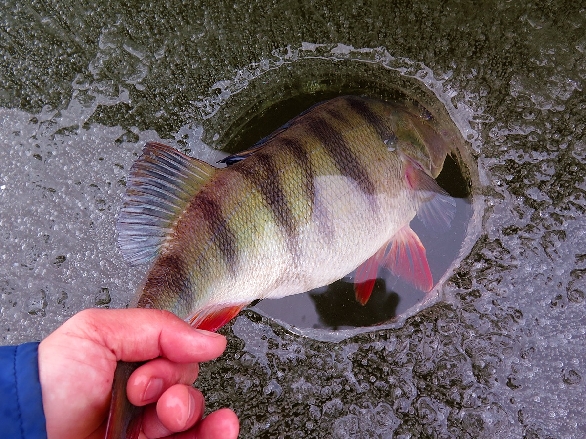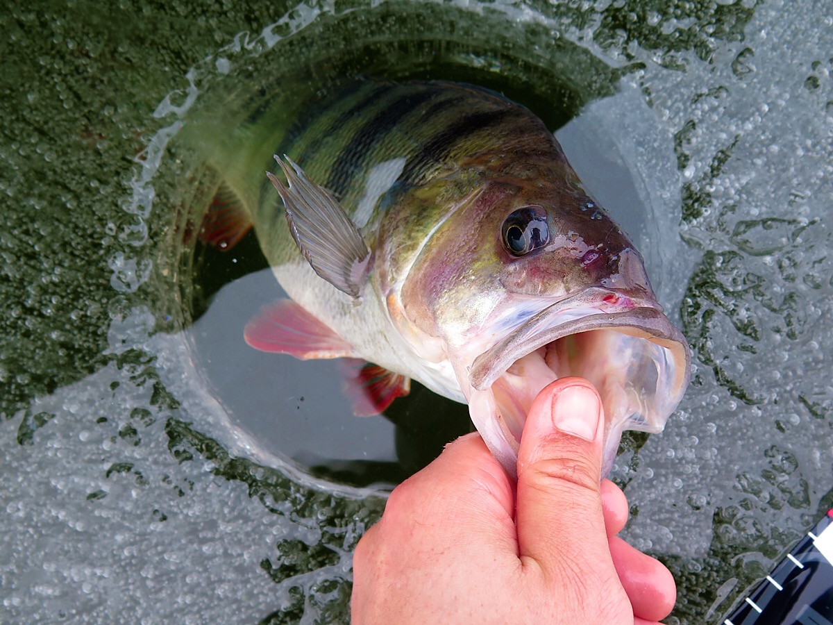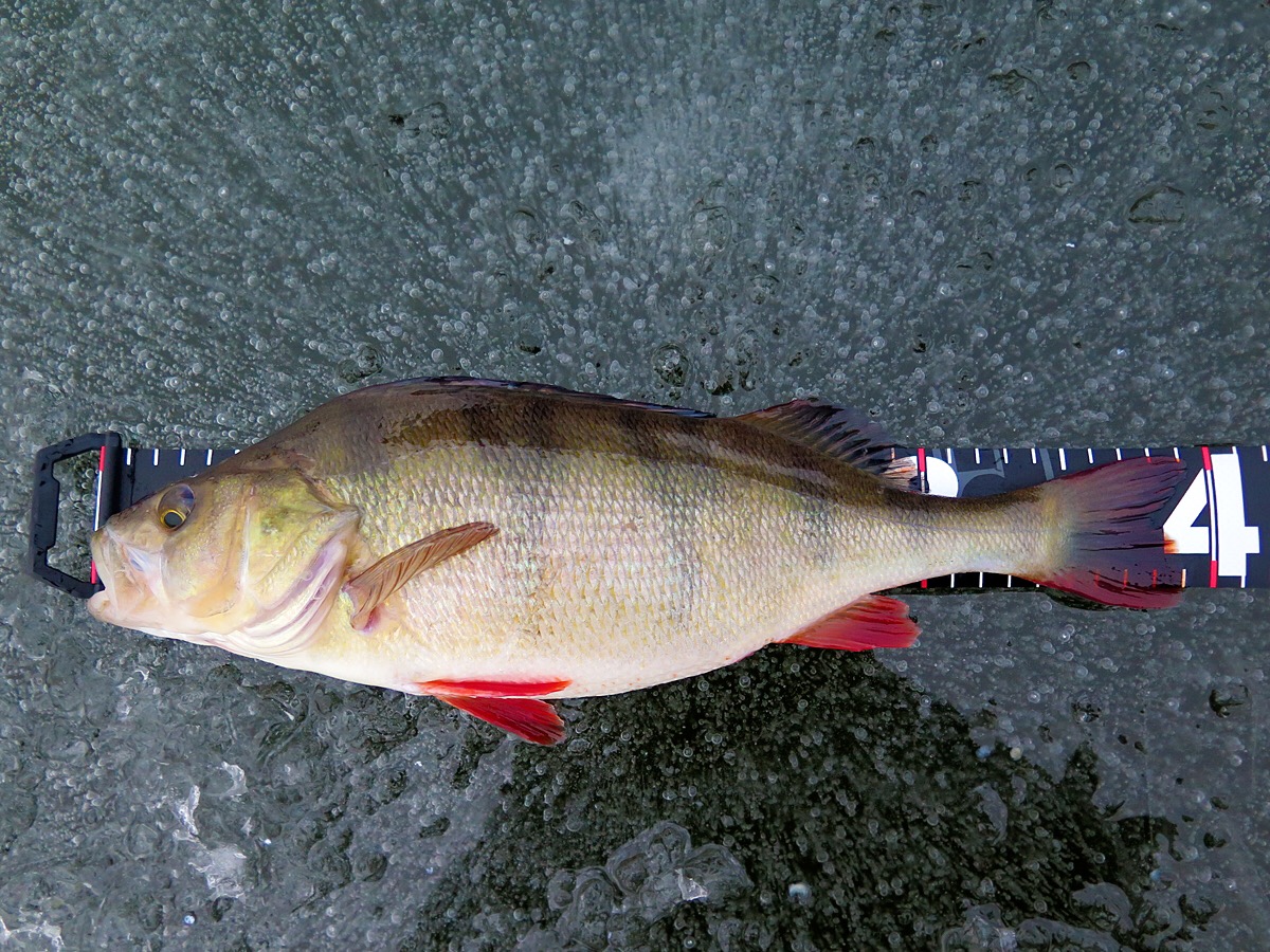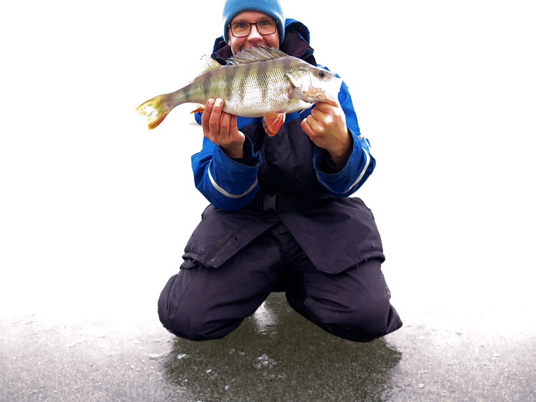 Abborre på agenda idag. Gjorde ett helthjärtat försök på att hitta grov abborre via ismete med mört. Smågäddorna gick igång direkt på morgonen och det kändes ganska trögt. Men strax innan lunch noterade jag en hel del nors och småabborre på ekolodet. Strax därefter högg första borren. Det var en 8hgs som tog mitt i frivattnet över ett 8m djup. Fisket sega ur igen. Vid 14 tiden flagga ett spö. Kutade bort och satte mothugget direkt. Fisken stötte rätt! Hjärtat slog frivolt när fisken gled upp i hålet. PB? Ja faktiskt. Endast 10gram över men PB var det. Fisken mätte 47,5cm och vägde 1330g. Med den längde kunde vikten varit något högre på abborren, men jag är sjukt nöjd ändå. Nästa pass blir nog redan i veckan. Mvh Ove