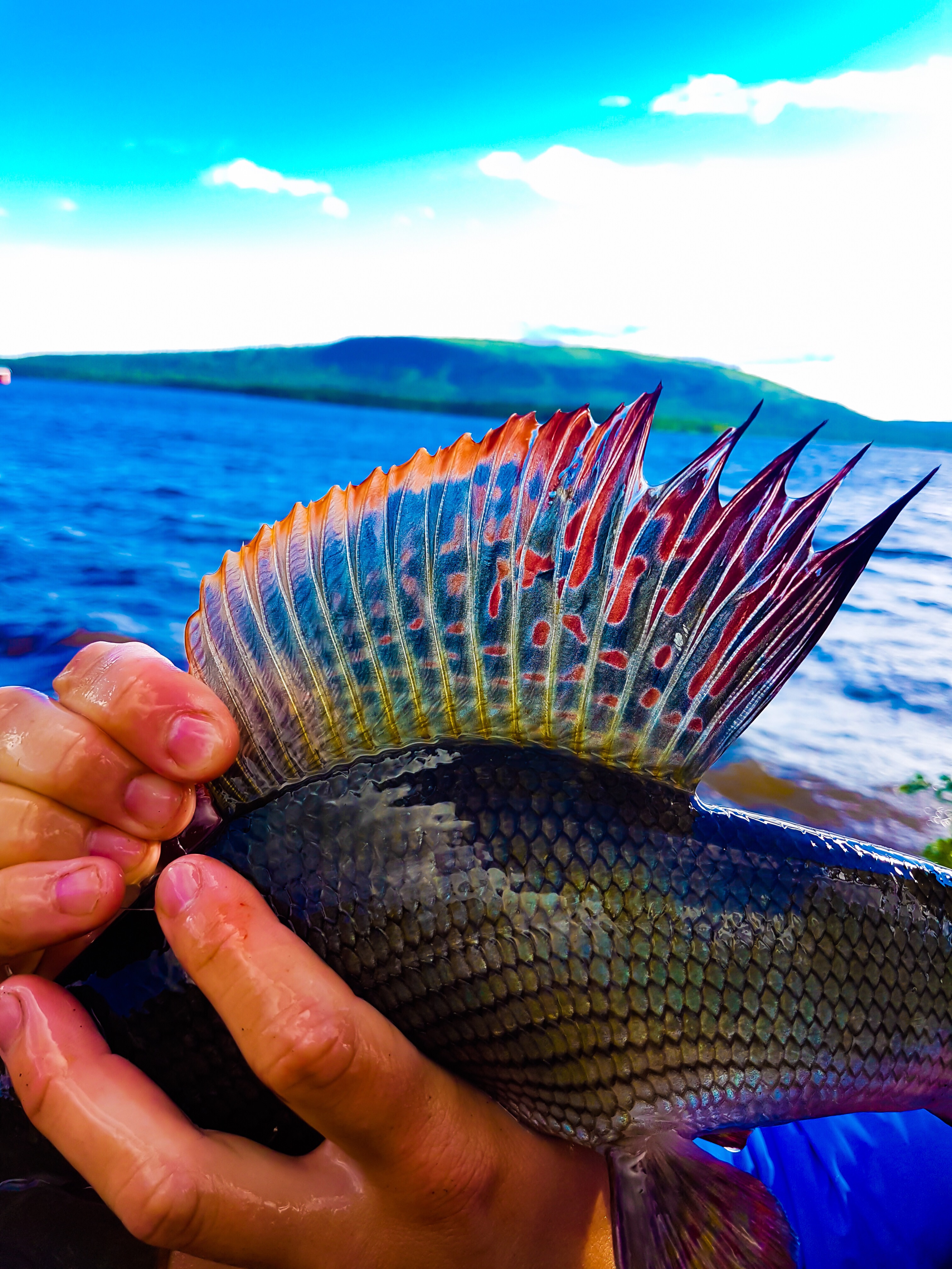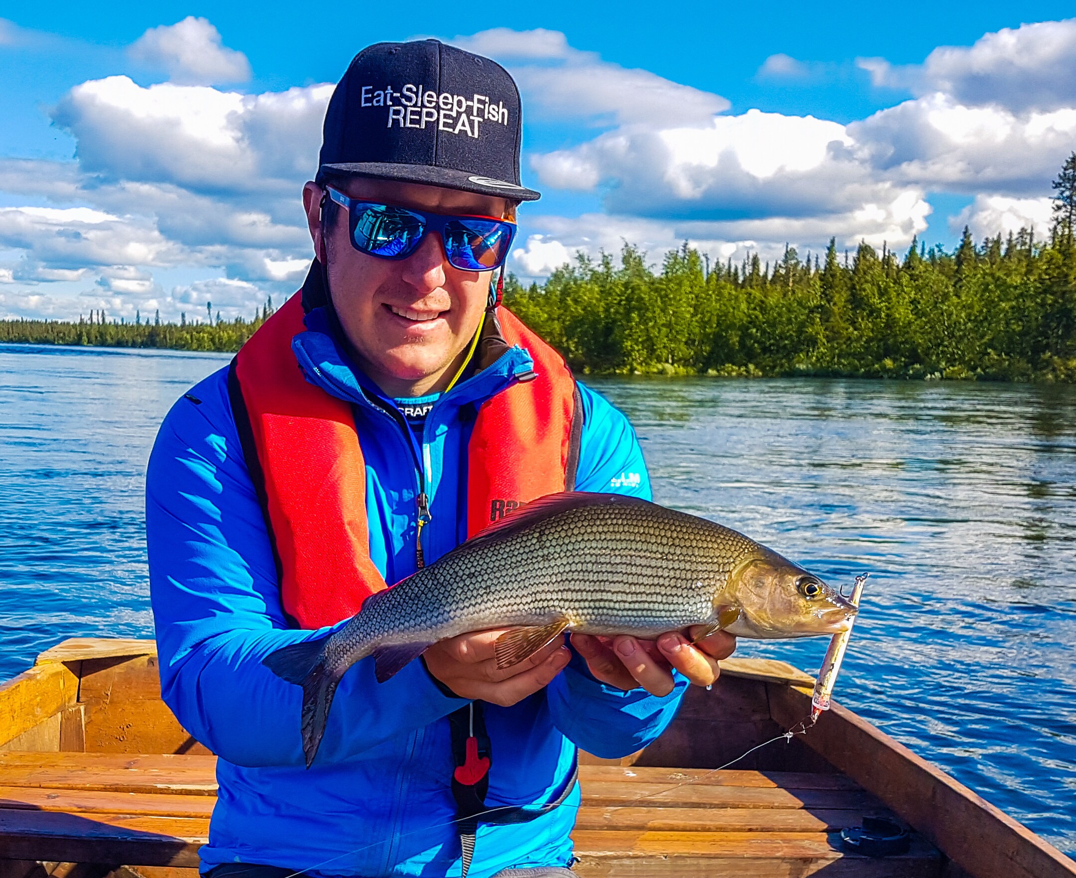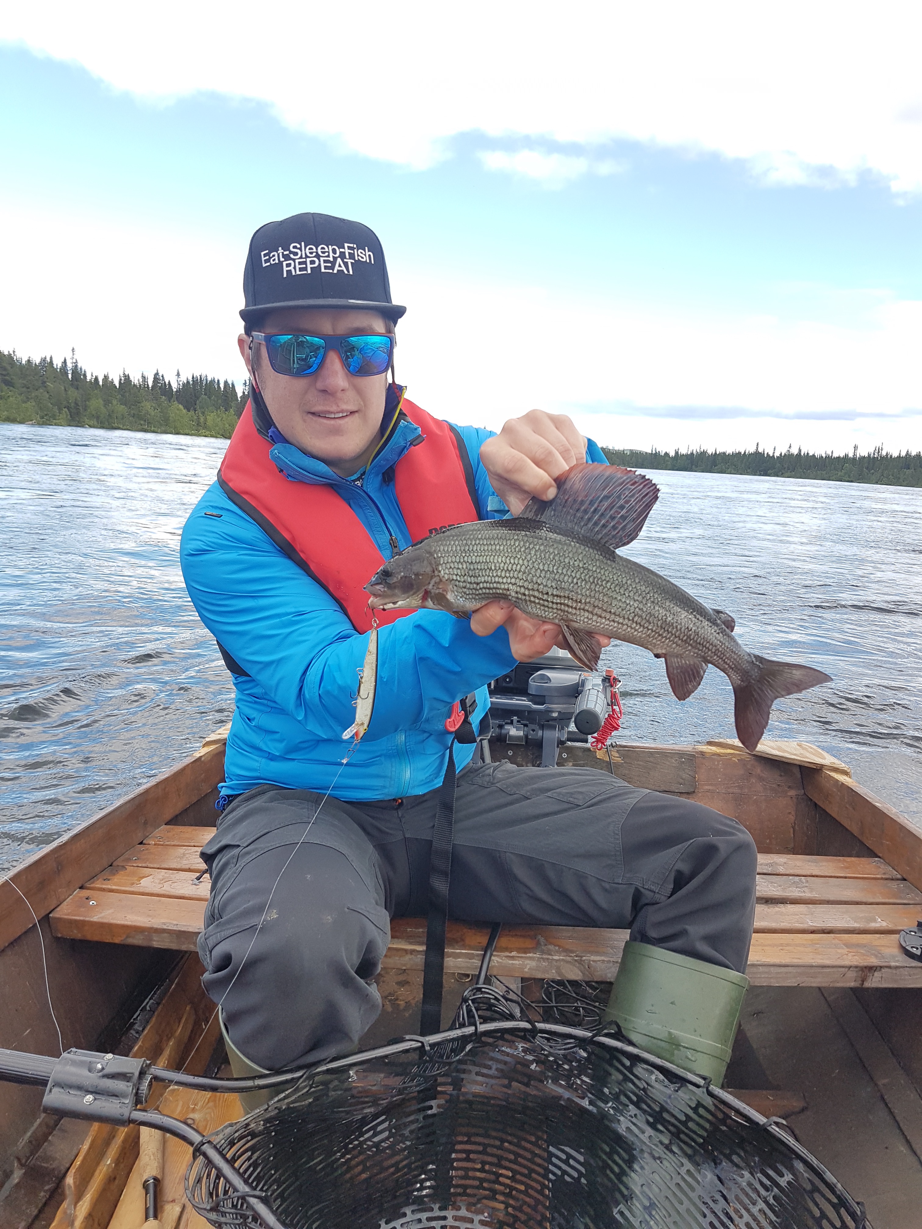 Ett kort pass efter harr i det enormt höga vattenståndet gav några fina fighter. Rapala F11 S var helt outstanding idag. Bäst fiske var precis i grynnkanterna och bland de största stenarna. Vi släpade betena sakta fram och tillbaka med hjälp av båten och massor med öring fick vi som bifångst. Inga stora fiskar idag men kul är det när det hugger.