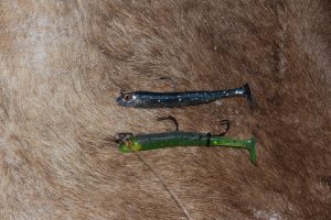 Årets första dag bjöd på en kort tur där fisket riktades på Öring. Jag har tidigare under vintern testat lite olika metoder på att pimpla abborre och öring med sommarens heta Jigg Storm 360GT. Speciellt där det är lite strömt under isen verkar den helt outstanding tack vare sin förhållandevis låga vikt. Till stora balanspirkar och jiggar brukar man använda grov nylon minst 0,40 för att få en långsammare gång. Fördelen med lätt bete är att man kan gå ner rejält i tafsstorlek och ändå ha lugn gång på jiggen. Jag har själv knutit fast en liten stinger av en enkelkrok, sufix 0.30 fluorocarbon och fäster detta med en O-ring enligt bild. Att fästa en 3krok i paddeln eller långt bak på kroppen tycker jag förstör denna jiggs fina egenskaper. Där jag satsade fisket detta pass är det väldigt lite abborre, men öring och harr patrullerar detta stråk. Bottendjupet för dagen blev mellan 6-11m.