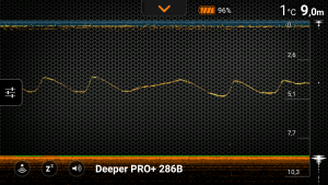 Lägg märke till hur långsamt jiggen sjunker(på skärmdumparna från min telefon kopplad via wi-fi till Deeper ekolodet)